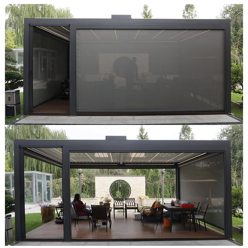 Factory Direct Motorized Aluminum Pergola Louver Roof Gazebo Outdoor Waterproof with Side Screens
